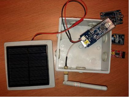 In order to deploy these sensor nodes throughout a structure, it’s often preferable to use low-power systems or energy harvesting wherever possible. One prototype of our sensor node integrated with a solar panel is shown in the following figure.